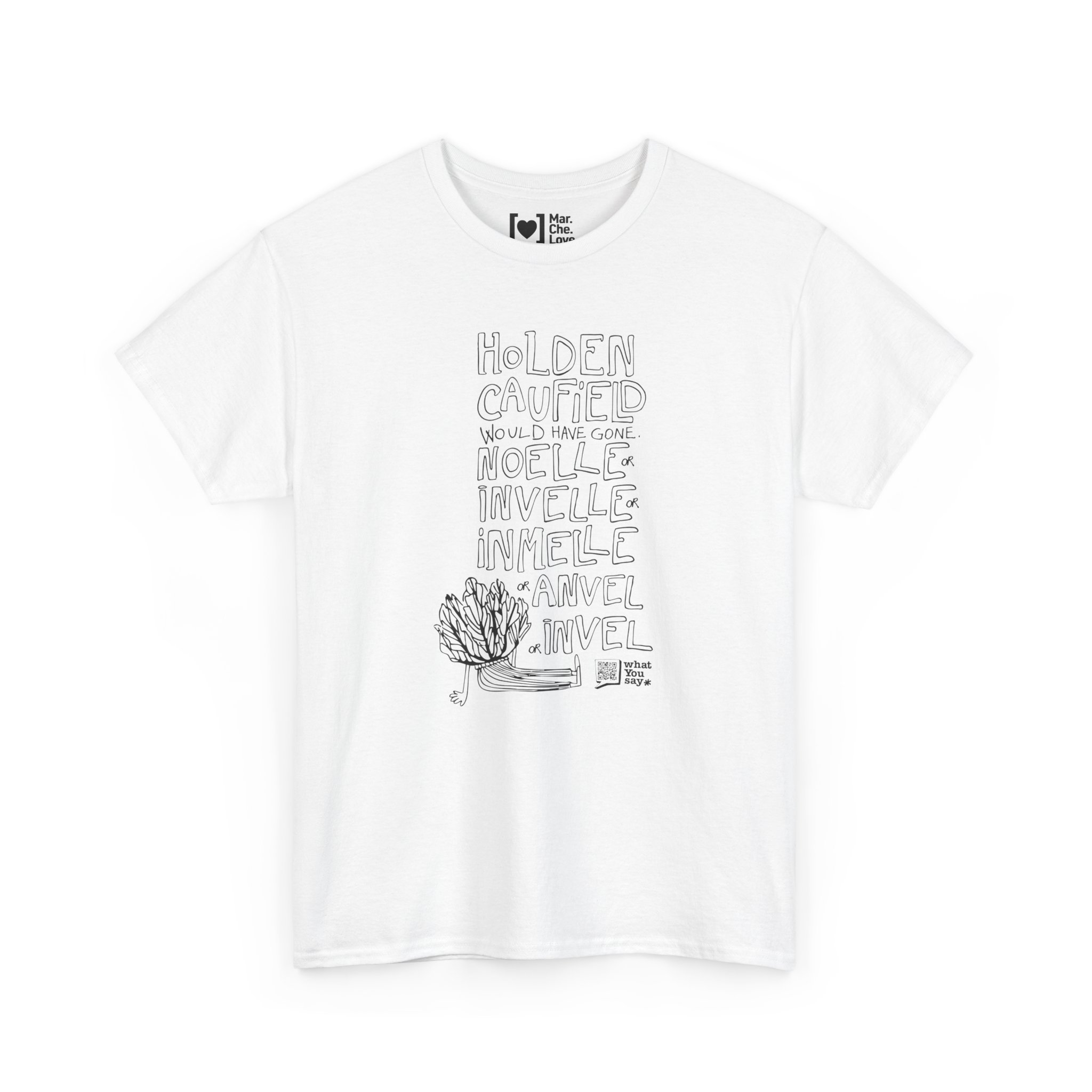 Scan the WhatYouSay QR on the T-shirt to discover the word “Noélle” and its variants in local dialects.