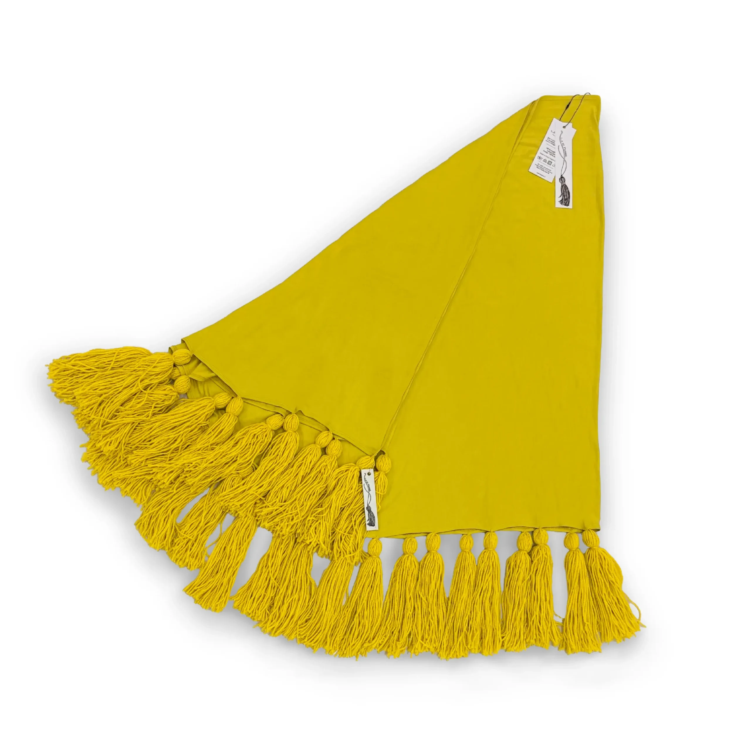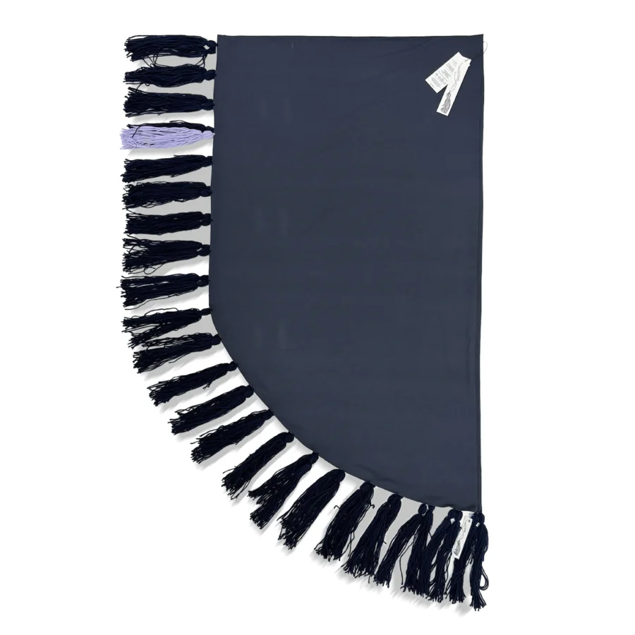 Mantella artigianale medio-lunga con frange sottili e più rare. Tessuto naturale, frange in pura lana e nappa colorata che rende ogni pezzo unico.