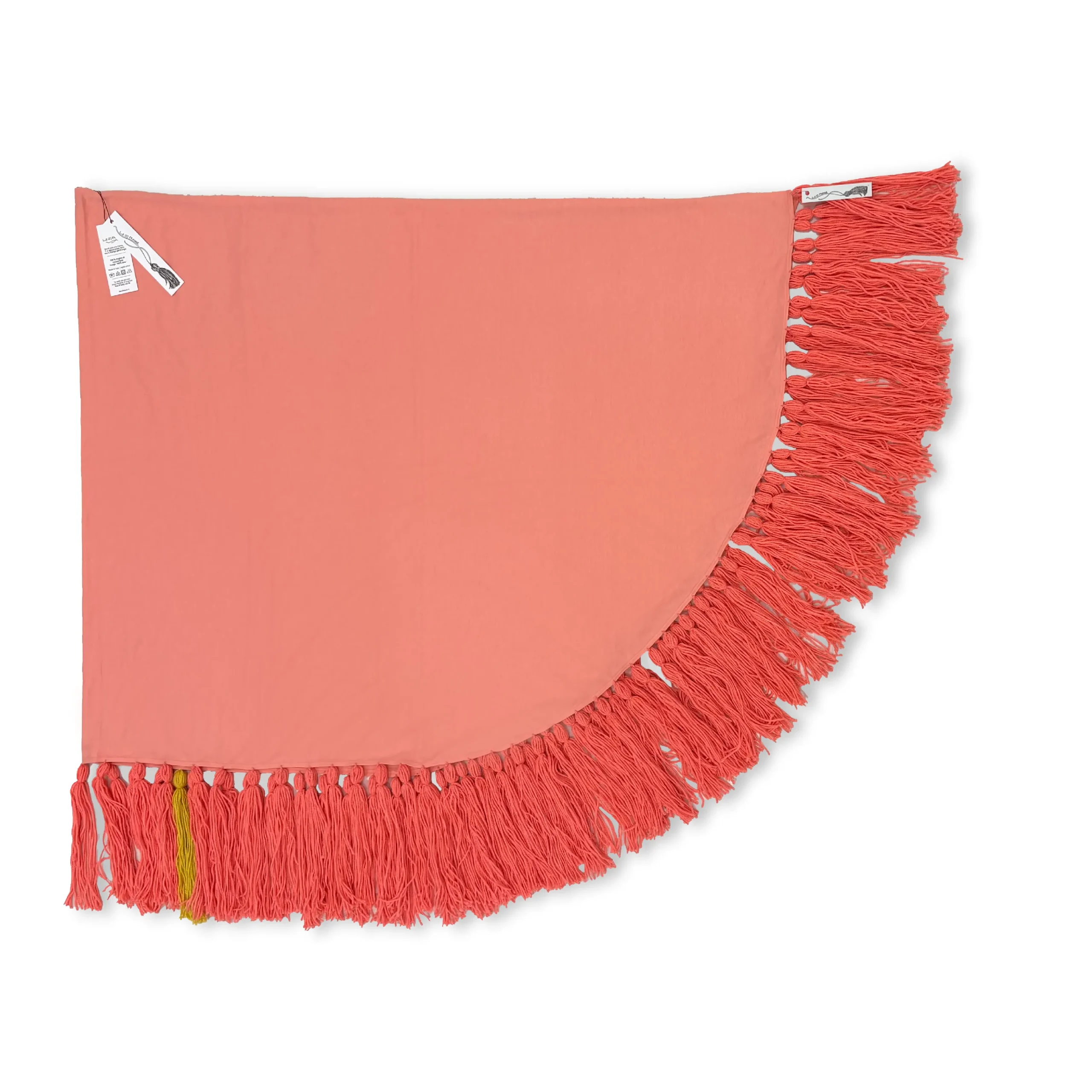 Mantella medio-lunga con frange sottili e fitte in pura lana. Realizzata a mano da un’artigiana marchigiana, con nappa colorata come dettaglio unico.