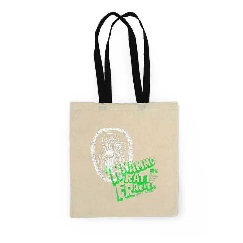L’oggetto: Shopper in cotone verde santino, resistente, edizione numerata. Formato comodo (38×42 cm) con manici lunghi neri, perfetta per la spesa, libri o piccole avventure quotidiane.