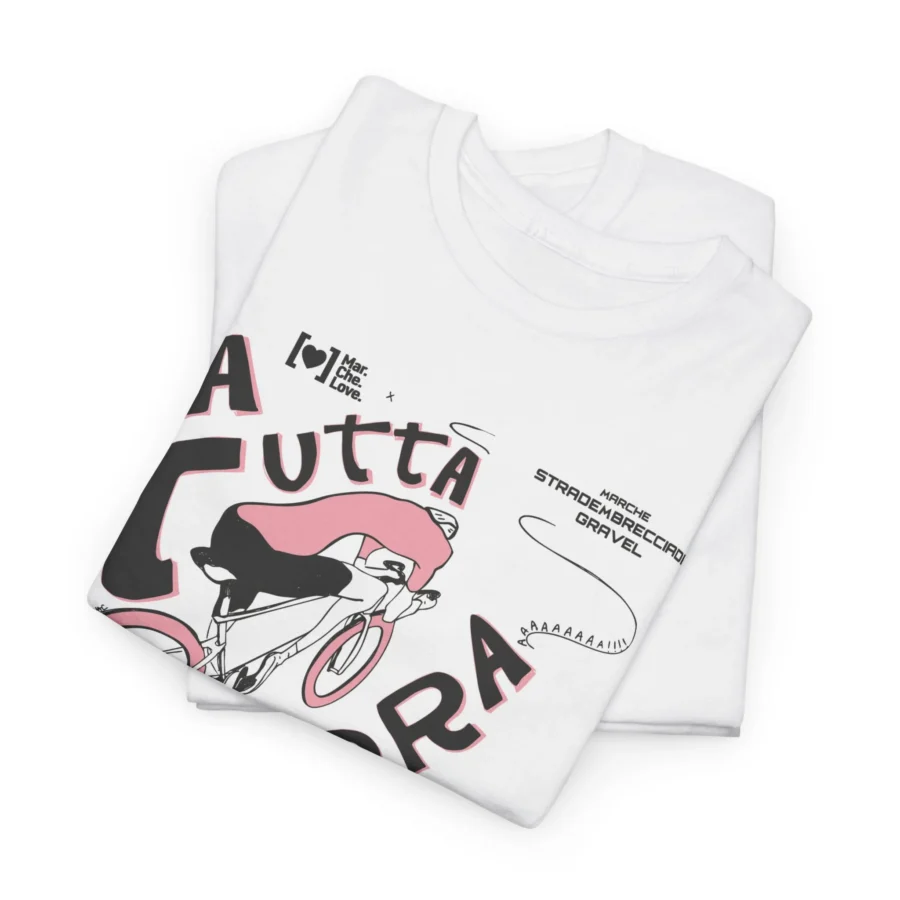 T-shirt unisex in edizione limitata numerata, serigrafia artigianale a due colori nata dalla collaborazione tra MarcheLove e Strade Mbrecciade.